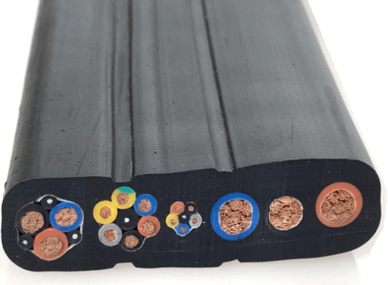扁電纜YKVFBG14×2.5+2×2.5P+2×4適用于交流額定電壓450/750V及以下移動(dòng)設(shè)備機(jī)上電器儀表連接線或信號(hào)傳輸,扁電纜兩邊加鋼絲承拉,可根據(jù)用戶需要在電纜設(shè)計(jì)中加入光纖作為通信之用,電纜具有阻燃耐熱、耐寒、防油、耐腐蝕、柔軟、耐磨、抗拉等特性,電纜廣泛用于冶金、電力、石油化工、礦山、船舶工業(yè)、港口及移動(dòng)設(shè)備制造等行業(yè)。