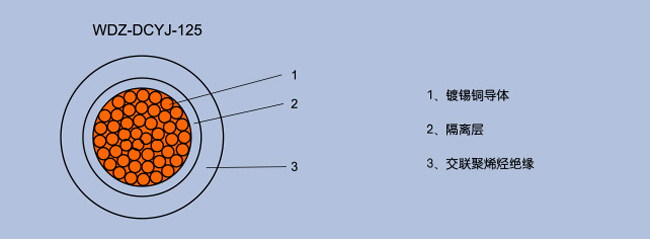 2 | WDZ-DCYJ-125 | 750V,1.5kV,3kV | 0.75,1,1.5,2.5,4,6,10,16,25,35,50,70,95,120,150,185,240,300 |